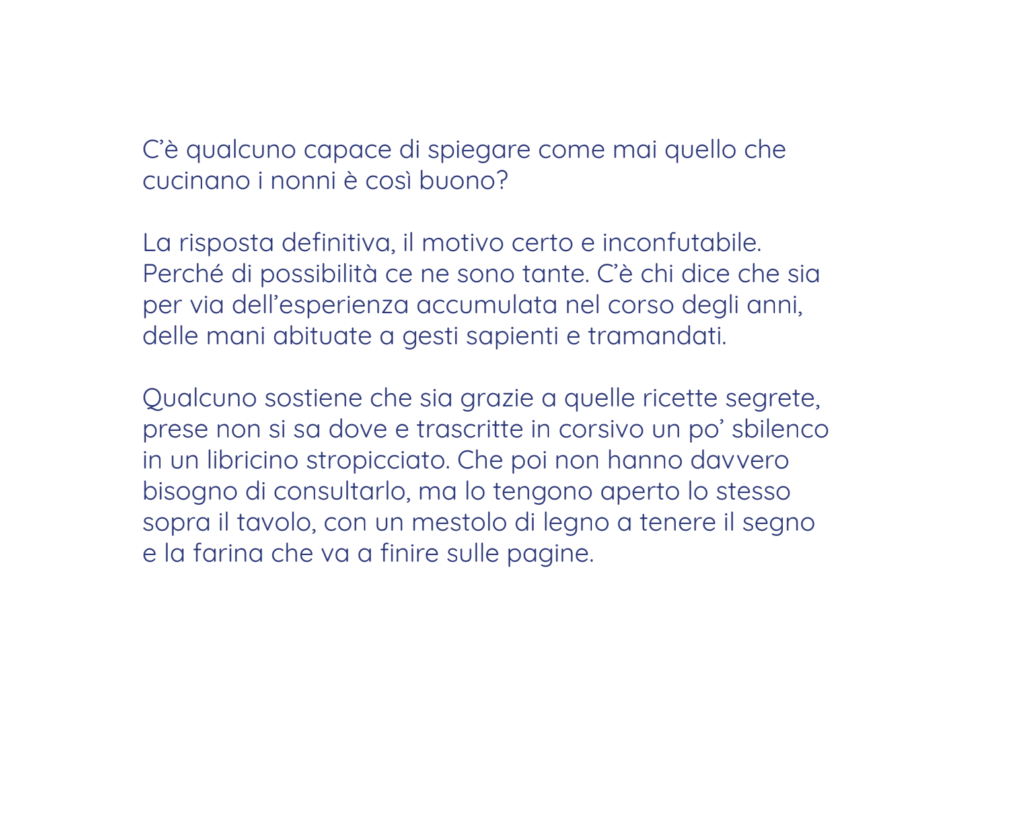 Capita spesso che i ricordi sui nostri nonni siano legati a filo doppio col cibo: quello che ci preparavano con amore, e che nessuno sembra in grado di poter cucinare allo stesso modo.