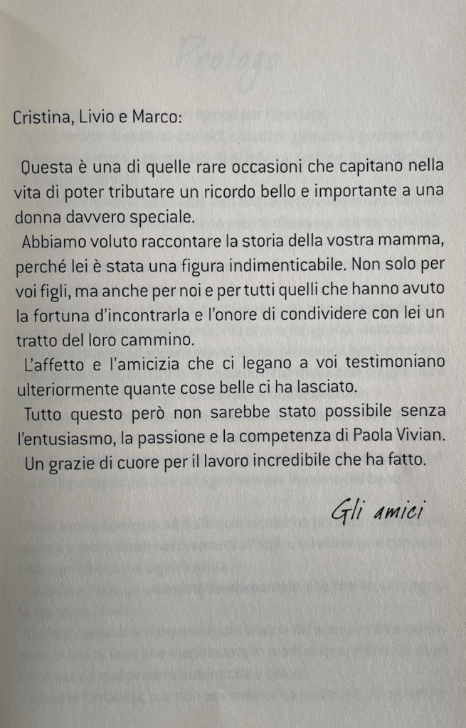 Gli amici l’hanno voluta ricordare con questo libro speciale, che è stato donato alla sua famiglia e che racconta i momenti più importanti della sua vita.